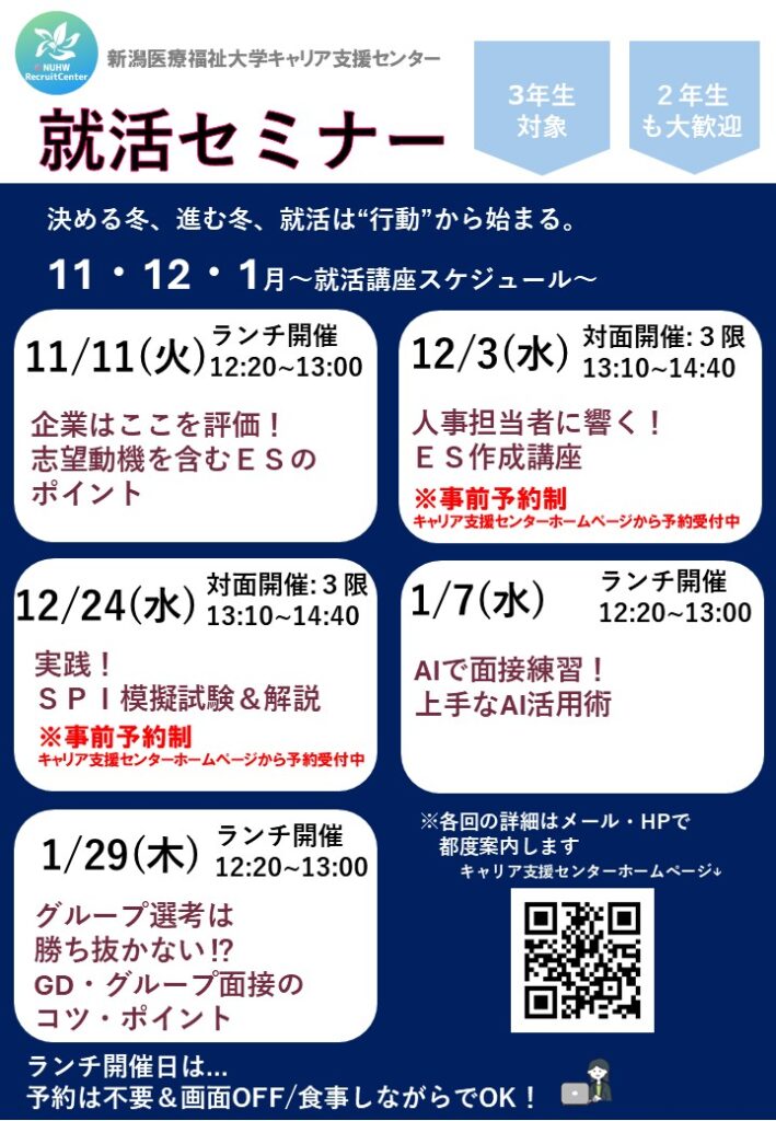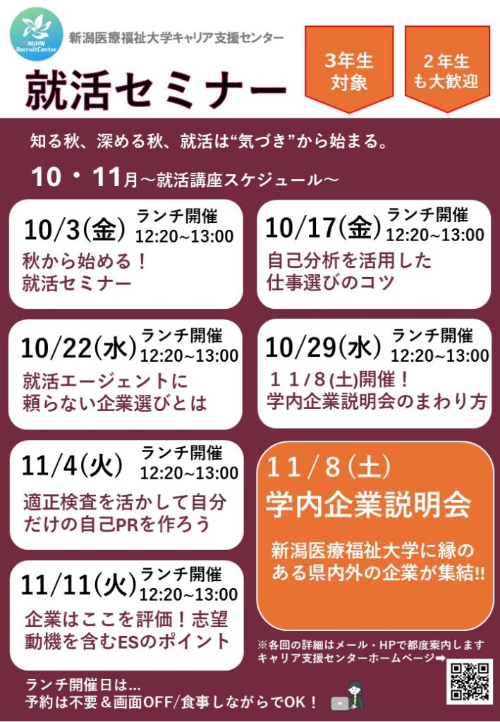 詳細:https://www.nuhw-recruit.jp/news-event/11-8%e5%9c%9f%e5%ad%a6%e5%86%85%e4%bc