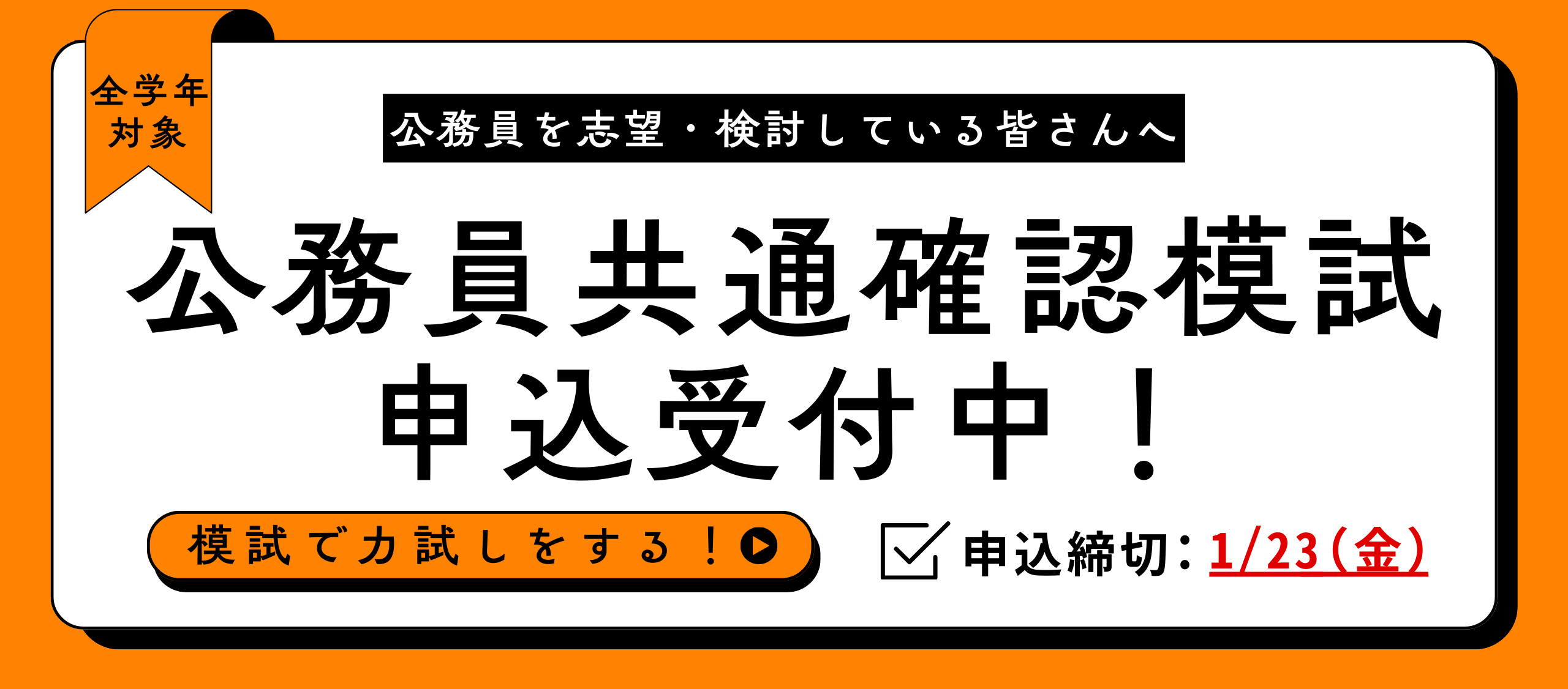【ご案内】1/23(金)締切 公務員共通確認模試申込開始